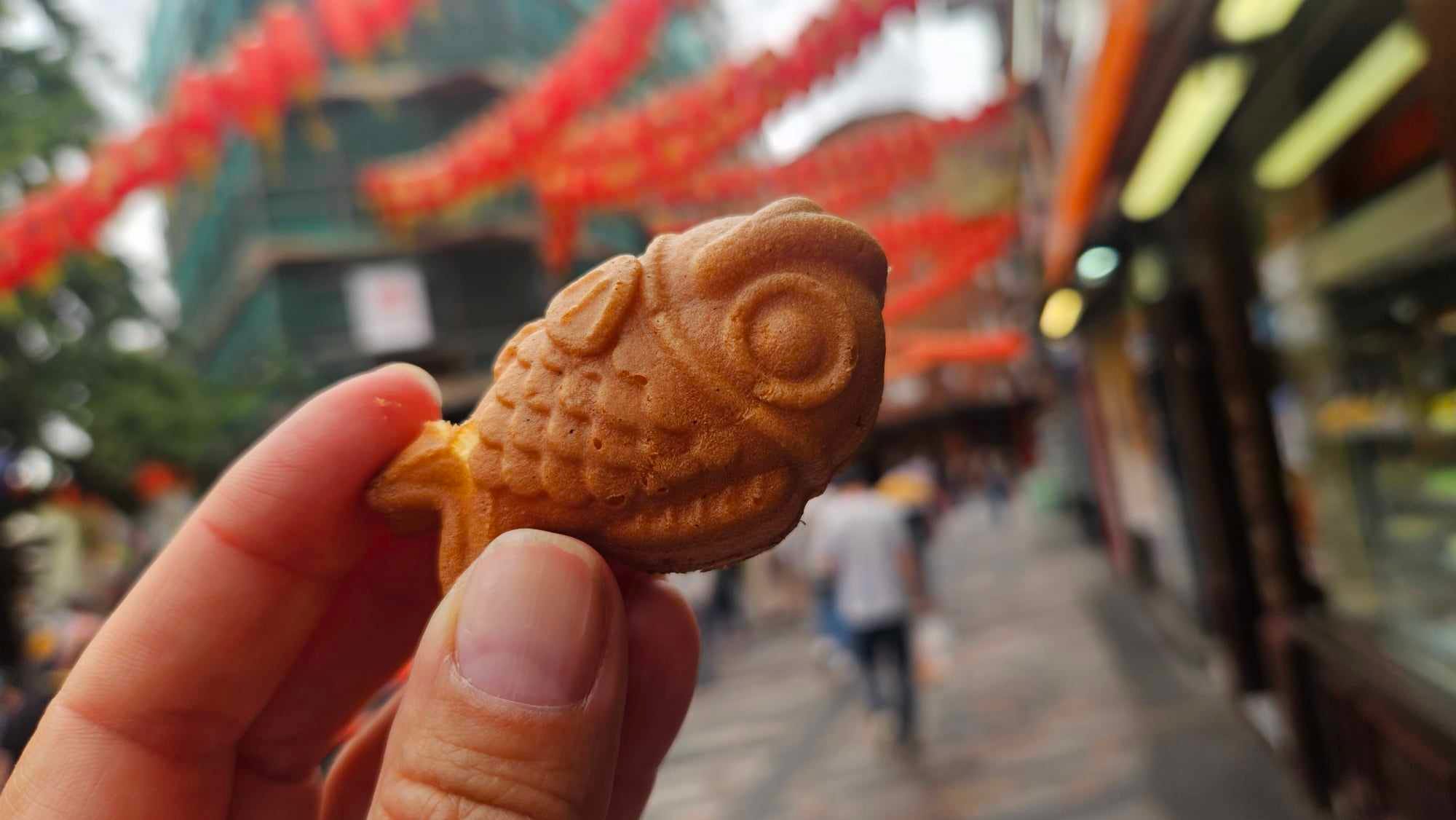 You can’t miss it, as it always has a huge queue of sweet-toothed kitsch-lovers waiting for a freshly-made, tiny, waffle-batter goldfish. With a splinteringly crunchy exterior and a lava-level-boiling custard filling, good luck having the self discipline to wait for these cute little fishies to cool. Take a video as the cooks fill waffle pans and flip the plump goldfish over. Then hold one aloft under the strings of lanterns that festoon the streets of Chinatown and join the millions who post such shots on social media [yup, also me, see photo at top of page]